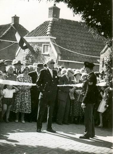 Al eerder liet ik enkele foto’s zien van de feestelijke heropening van de Moeshorn in de jaren vijftig. Nu dus nog eens eentje (uit het foto-album van Henk en Gaatske Geertsema) waarop burgemeester Stronkhorst en ‘plietsie’ Van der Molen duidelijk zijn te herkennen, in afwachting van wat gaat komen…. (Het doorknippen van een lint door boer Huizinga). Op de achtergrond een schare belangstellenden, onder wie aanwonenden van de Moeshorn zoals de heer en mevrouw Geertsema en moeder en dochter Van der Veen. Wie herkent er nog meer???!