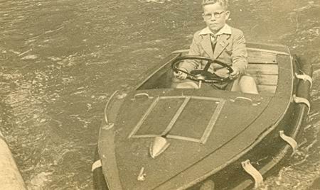 Heerlijk, prinsheerlijk varen in dat bootje tijdens de schoolreis in 1947! Henk voelt zich zo te zien in zijn element ondanks de wat 'officiële' kleding, inclusief stropdas. Zo ging dat toen, tijdens schoolreizen, ook nog in de jaren vijftig, ik kan daarover meepraten. Zo'n motorbootje? Het doet mij denken aan Tinaarlo.... Of was het Paterswolde? Ik vond het super destijds, maar véél te kort....