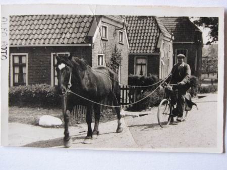 Enkele dagen geleden liet ik nog eens een foto zien van de feestelijke heropening van de Moeshorn, na de bestrating, begin jaren vijftig. Veel publiek, én autoriteiten als burgemeester Stronkhorst en politieman Van der Molen, aan weerskanten van het lint, door te knippen door Halbe Huizinga, aanwonend. Naar aanleiding van o.a. deze Moeshornblog kreeg ik een foto toegestuurd (met dank aan Meile Tamminga en Marjette Hummel, bewoners van Moeshorn 4!) waarop dit gedeelte van de Moeshorn fraaier in beeld komt Let wel, het gaat om ‘de oude Moeshorn’ van voor de bestrating. Afgebeeld tevens Jan van der Veen op de fiets, een paard (bege)leidend. Jan van der Veen woonde verderop op nummer 13, was jarenlang de buurman van de familie Hummel (op nummer 15). Een heel mooi historisch beeld, waardevol document! Hebt u aanvullingen of anderszins toevoegingen, eventueel foto’s? Ze zijn van harte welkom! (jan_b@hetnet.nl of Verl.Oosterweg 33, 9804 RD Noordhorn).