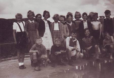 Volgens mij ben ik dat met de grote strik, naast mij met de bril is Gerda Eggink. Ik ga de foto nog meer bestuderen want de gezichten komen mij vaag bekend voor. Ik ben in 1944 geboren dus kan het niet uit de jaren dertig zijn.