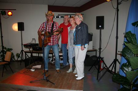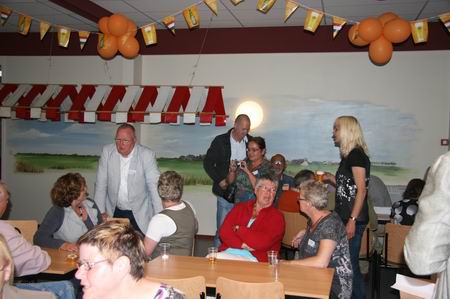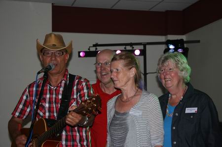 Regiozanger Sytse Scheeringa gaf een geslaagd optreden en kreeg af en toe assistentie van zanglustige reünisten