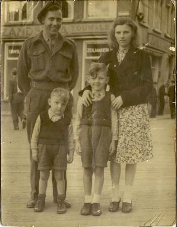 Op deze foto staan de ouders van Coby Volberda: Jan de Vries en Anna de Vries-Hekkema, samen met Coby's broers Harry (links) en Jimmy, op familiebezoek in Sneek. Jan de Vries was in 1946 en 1947 bij de Binnenlandse Strijdkrachten