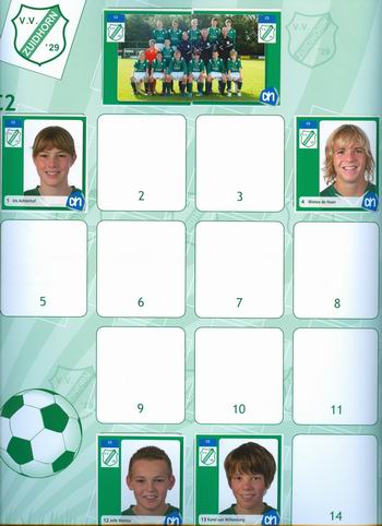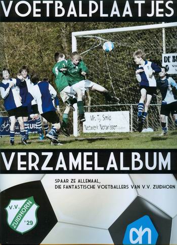Kijk, zo ziet het voetbalplaatjesalbum er uit dat is gerealiseerd door samenwerking van de voetbalvereniging Zuidhorn en supermarkt Albert Heijn.: