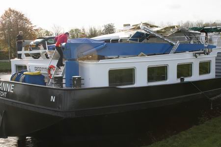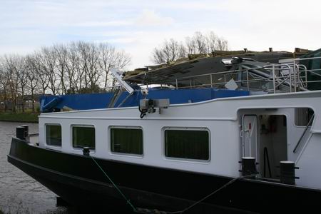 De gehavende Rosanne aan de noordkant van het Van Starkenborghkanaal ter hoogte van de parkeerplaats van de firma Koopman