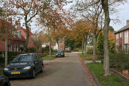 Rechts enkele van de huizen die waarschijnlijk (Direct na de oorlog? In de jaren vijftig?) zijn gebouwd door aannemer Pottjegort