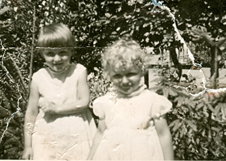 En dit zijn Aafke en Cathrien Burgler, zusjes; dochters van Melis en Griet Burgler, toen wonend aan de Oosterweg naast de entree van de 'Wegwijzer'