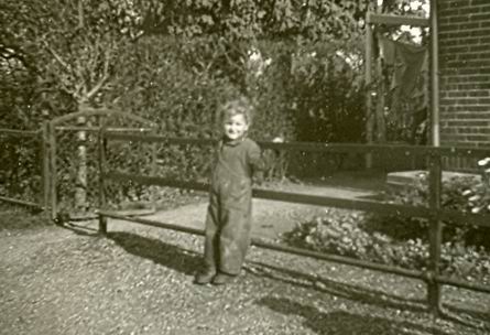 Dit is dan de 3 à 4-jarige Cathrien Burgler bij het meestershuis, waarin destijds hoofdmeester Ale Dijk en zijn vrouw woonden, met hun zoons Jan en Piet