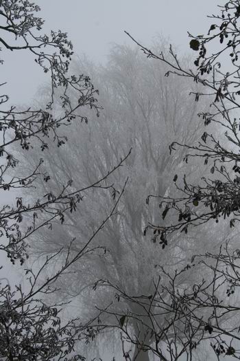 Dit vind ik nou een mooi plaatje! Een fraai berijpte boom aan de N355 gekiekt tussen de takken van de elzenstruiken door. Een lang leven zal deze situatie niet meer beschoren zijn, hier komt een belangrijk onderdeel van de wegomlegging van de N355.
