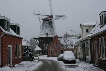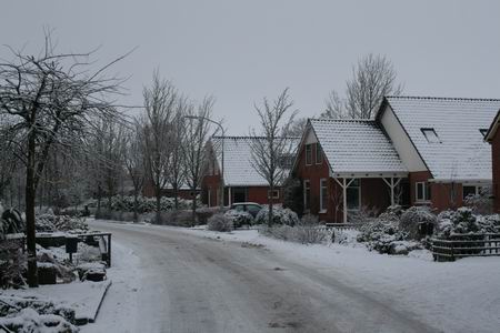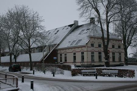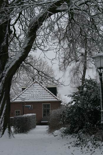 Dit is ook zo'n plek, bij de toren, die fotogeniek is, ook door die dikke laag poedersuiker, pardon, poedersneeuw..... (De oliebollen kondigen zich aan...) Huize De Vries aan het Torenpad in een fraai lijstje!