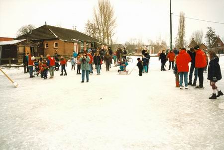 Deze winter is “even” op zijn retour, volgens weerkundige P.P. gaat het in de komende dagen “warm water” regenen… Vreemd, begin januari en dan al het gevoel een héle winter te hebben gehad. Wie weet komt er heus nog wel meer schaatsijs, traditioneel in februari bijvoorbeeld. Merkwaardig genoeg ben ik dit seizoen nog niet op de ijsbaan bij het sportveld geweest. Nou ben ik ook niet zo’n trouwe gast op die plek, ik waag me liever niet op (al te) glad ijs… Meestal kom ik er wel wat foto’s maken, maar dat is er dus nog niet van gekomen. Daarom enkele beelden uit vroegere jaren. Een foto uit het familiealbum van Henk en Gaatske Geertsema, uit 1986. En twee foto’s uit de nalatenschap van oud-dorpsgenoot (en ex-wethouder) Jaap Tempel. Die laatste twee foto’s zijn afgedrukt in 1996, ik neem aan dat het beelden zijn uit de toen net voorbije winter 1995-1996. Herkent u iemand of hebt u zelf vermeldenswaardige herinneringen aan de schaatsmomenten bij de oude Dörpsstee? Wellicht nog foto’s? Altijd welkom!