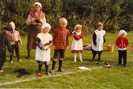 Een buitenactiviteit van CBS 't Kompas Noordhorn. Een moeder als spelbegeleidster, zeven kinderen verkleed in beeld