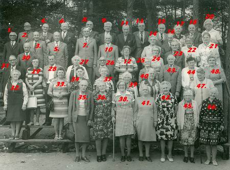 Stevige envelop vanuit Canada, van Ouktje Hessler (de Vries), Grande Prairie, AB. In ieder geval de hartelijke groeten vanuit dat ‘verre’ Noord-Amerika + een kopie van de groepsfoto met senioren, UIT in de jaren zestig. De foto (beschikbaar gesteld door Louwe Pijpker) stond ook al eens in “Noordhorn Nu” en op deze site. Ik zal hem zo laten zien, mét nummers. Ook Ouktje de Vries heeft haar geheugen nog eens intensief geraadpleegd, en ze heeft overlegd met ‘de familie Velting‘, deels in Amerika, deels in Nederland (Roden). Ouktje schrijft: