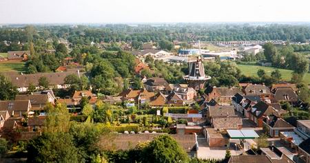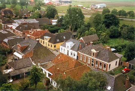 Eerlijk gezegd ben ik vergeten wanneer Pepi Burgler de foto’s heeft geschoten, vanaf de toren bij de Hervormde Kerk, toen ‘in renovatie’. Daarom was er toén (begin jaren ’90?) een unieke mogelijkheid om ‘luchtfoto’s’ te maken (al hadden de werkers aan de toren enige tegenzin; ze wilden blijkbaar liever exclusieve beelden van/voor een enkele, betalende fotograaf…). Dirk Vos heeft toen ook dorpsbeelden vastgelegd, iets daarvan heb ik al eens laten zien. De andere komen vast en zeker nog wel aan bod, er ligt nog veel materiaal……