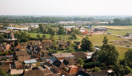 Een foto van Pepi Burgler, gemaakt vanaf de toren richting zuid-west. Een deel van de Langestraat in het vizier, en het bedrijventerrein in ontwikkeling. Aan de verre horizon de vrachtwagens van Koopman...
