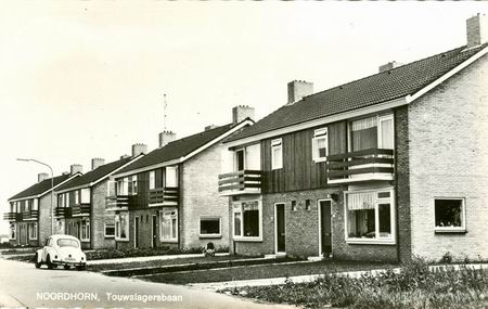 Nee, beslist geen Touwslagersbaan, zoals op de kaart staat gedrukt. Onmiskenbaar de Noordwijkweg met de nieuwe huizen van o.a. de families Wecke en Vos, Jansen en Berghuis, de mensen van het eerste uur aan de Noordwijkweg-Noord. Niet belangrijk, beetje slordig. Hebt u voorbeelden van dergelijke ‘fouten’? (Wat Noordhorn betreft…) Ik hou me aanbevolen!