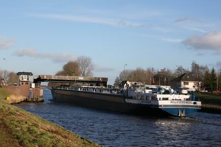 Foto van dezelfde situatie. In beeld de verkeersbrug, een forse binnenvaarder doorlatend. Op de achtergrond geen kerk meer, de lager geplaatste torenspits is na enig zoeken te traceren. De pastorie is van kleur veranderd en wordt nu particulier bewoond