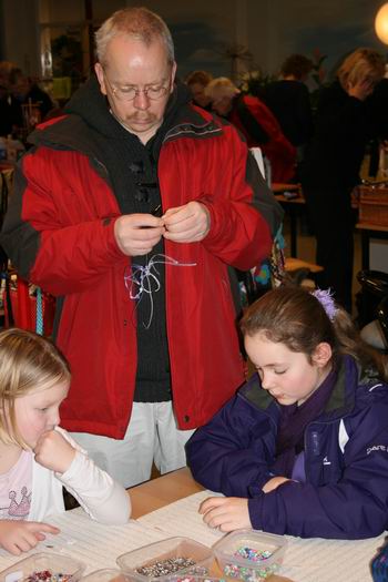 Kralen rijgen, kettingen maken, of een fraaie armband.... Als kind heb ik ook een kralenrijgperiode gehad, hiér waren het vooral meisjes die aan de workshop meededen. Al was het soms wel handig dat pa in de buurt was, even een werkje uit besteden....
