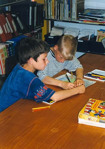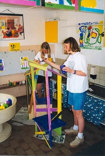 Beeldende vorming met o.a. schilderen als belangrijk expressiemiddel. Oudere kinderen in het domein van de jongsten, juli 1999
