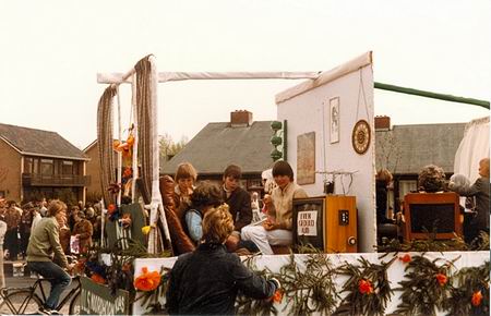 In ieder geval herinner ik me enkele keren dat we van school uit een deel van de stoet voor onze rekening namen. Er waren OLS/OBS-wagens, wagens van andere scholen (als die scholen er al waren op dat optochtmoment…), wagens van Dorpsbelangen, van straten, van buurtverenigingen etc. Zelf herinner ik me het opbouwen van een praalwagen in de boerderij van de familie Vermue, maar dat gebeurde bijvoorbeeld ook bij de familie Schuiringa. Altijd gezellige bijeenkomsten met veel inzet en versierkunde van vele vrijwilligers. Bij een volgende optocht kwam het initiatief niet goed uit de verf en toen hebben Wim Cazemier en Sjoerd Boonstra eigenhandig een prachtige woonwagen getimmerd en gingen ze zelf, met een schare kinderen, als zigeuners gekleed. F.Top noemde eerder al boer Tamminga (van de zuidzijde van het kanaal) die betrokken was bij een praalwagen van de Geref.Basisschool. Ik zit me alleen af te vragen: Wanneer was die school er precies in Noordhorn, van start tot sluiting? Niet alles is helder, wie aanvullingen en verduidelijkingen kan geven, graag!
