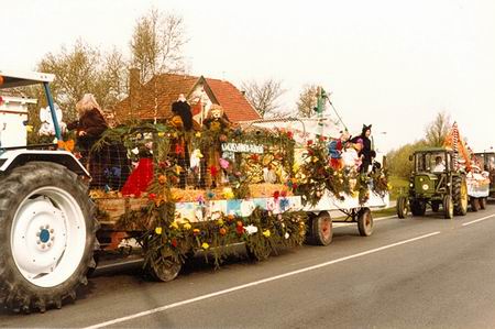 Optochten, Ze lijken in de 21ste eeuw niet meer zo in de mode, althans wat betreft de gemeente Zuidhorn. In de vorige eeuw, nog niet zo lang geleden, was dat anders. Ze zijn er in vele soorten en maten geweest, altijd met een geweldige inzet van tientallen vrijwilligers, veel bekijks en een hoog fotogeniek gehalte. Helaas is er bij die foto’s niet altijd goed bijgehouden, wannéér de optocht werd gehouden…. Was het 1973, toen Koningin Juliana haar 25-jarig koningschap vierde met haar langenoten? Of was het een bevrijdingsoptocht, zoals die meestal eens in de vijf jaar op het programma werd geplaatst? 1970? 1975? 1995?