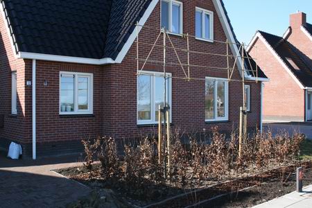 De voortuin van de familie Boekel aan de Meidoornstraat is volop voorzien van leilindes, beukenhaag en hortensia's die nog weinig last hebben van groeistuipen. Maar dat komt nog wel!
