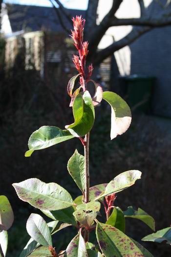 Ja, ik weet het, de bladeren vertonen verdachte roestplekken, maar door de lichtval toch een fraai voorjaarsbeeld! Hoe die heet? Ach.... de naam ligt op mijn tong....