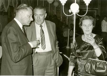 Meester Ale Dijk tijdens een bijeenkomst in waarschijnlijk café-restaurant Jager, nu "De Gouden Leeuw". WIE staan er nog meer op deze foto?????