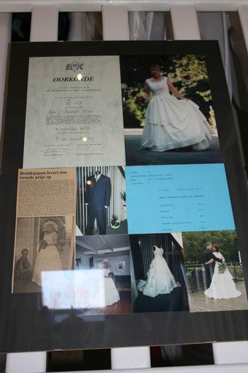 Oorkonde, foto's e.d. die herinneringen oproepen aan het behalen van een tweede prijs bij een landelijke 'wedstrijd' wat het maken van bruidskleding betreft