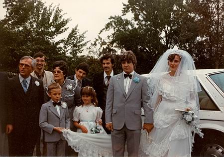 Een foto die in Australië is genomen, neem ik aan. Jaren tachtig? Een huwelijksfoto van dochter Coby met op de achtergrond Tjaard, Rick, Lies, Michel en André