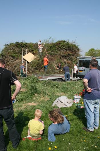 De tweede opbouwzaterdag (23 april jl.) verliep nog droger en vooral warmer dan de eerste, een week geleden. De Paasbult heeft weer een fiks formaat gekregen, al denk ik niet dat er een record is verbroken. Als je trouwens ziet hoeveel snoeihout er in zo’n bult wordt gestouwd…. (En eerst op diverse wijzen wordt aangevoerd….)! HULDE voor het team dat zowel op 16 als op 23 april het opbouwwerk voor zijn rekening nam!