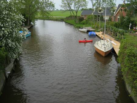 Ook Niezijl heeft zijn aantrekkelijke plekken, zoals hier vanaf de brug, noordwaarts, Kommerzijlsterdiep. Een VVV-folder waardig! (VVV??? Bestaat die nog????)