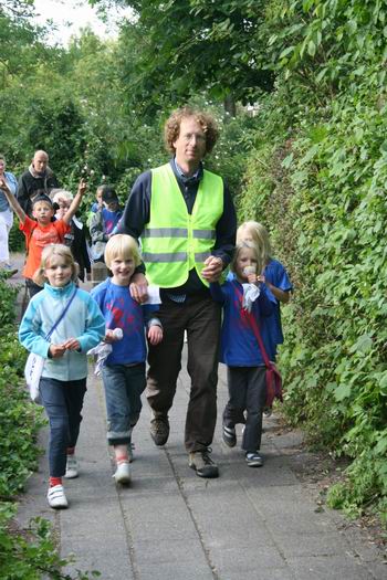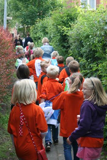 Eerlijk gezegd was de Avondvierdaagse 2011 op de achtergrond geraakt, ik dacht er gewoon niet aan. Totdat gezang, geschreeuw, getoeter mij opmerkzaam maakte op dit uitzonderlijk fenomeen waaraan zoveel jeugd + ouders deelnemen. (En dat is voor de organisatie in ieder geval een heuglijk feit!). De Canon EOS erbij, positie gekozen nabij het verbindingspad tussen Verlengde Oosterweg en Nieuwstraat. En dan zijn er altijd wel enkele leuke beelden vast te leggen (al mislukte er deze keer erg veel….)