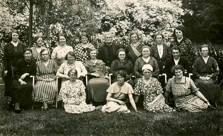 Deze nieuwe foto laat een groep dames zien, op het gras, voor een achtergrond van heesters en bomen. Niet meer zo piepjong als de meisjes in de Langestraat. Het is een oude, maar puntgave foto, gemaakt vóór de oorlog. Een vrouwenvereniging waarschijnlijk, van de gereformeerde kerk. Er staan niet alleen Noordhorner dames op dit groepsportret! Wie (her)kent deze twintig dames of enkele van hen??? (De foto is afkomstig van Jan Spoelstra (Haren). Zijn moeder, mevr.Spoelstra-Casemier, leeft nog (in Haren) en zou ook graag namen horen van geportretteerden!)