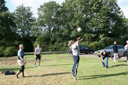 De bespeelbaarheid van dit voorveld is prima, opvallend! Volleybal buiten op gras kan, als het glad is, vervelende gevolgen hebben. Gedurende mijn kijktijd bleven blessures uit, goed dat er niet al te fanatiek werd gespeeld. Ieder heeft zijn ledematen en zijn spieren lief…. Goed dat er slechts vier teams hebben ingeschreven, het toernooi is op deze ene plek goed af te werken. (Op dit voorterrein zou je ook heel goed “voetvolley’ kunnen spelen…)