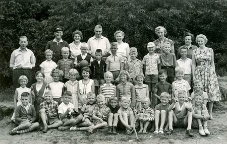 Het is de tijd van de schoolreizen! Hier een prachtige, duidelijke foto (die ik zowel van Piet Dijk als van Ton Vledder kreeg!) Acht volwassenen ter begeleiding van zo’n dertig schoolkinderen. Zo te zien op een mooie dag gezien de vele blote armen en benen… Wie staan er op de foto???!!! Reacties naar JanBlaauw@hetnet.nl of in de brievenbus van de Verlengde Oosterweg 33, 9804 RD Noordhorn! Bedankt!
