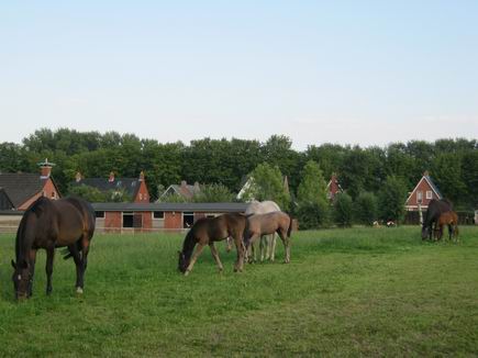 Piet Bos, zoon van Harm Douwe (zie vorige blog!), is zelf een echte paardenliefhebber. Hij houdt zelf paarden op het vroegere zwembadterrein aan de Badweg. Een enkel gebouwtje van het openluchtzwembad (in 1970 gesloten) staat er nog, is aangepast als stal. Piet Bos woont vlakbij, heeft ook ander groenland tot zijn beschikking, achter en voor zijn prachtige woonstee. Op het moment zijn er drie merries met even zo veel veulens, bij Piet in goede handen!
