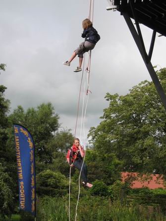 Het abseilevenement was geregeld door een van de ouders. Negen meter naar beneden, een echte uitdaging!