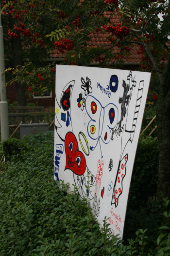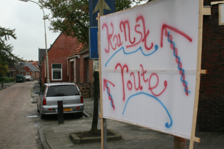 De Nieuwstraat, ondanks de teleurstelling van een opnieuw uitgestelde opknapbeurt, bedacht een KUNSTROUTE met nadrukkelijke inbreng van de kinderen