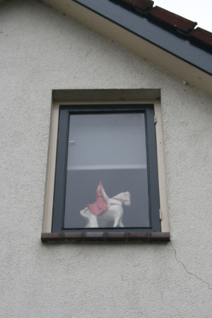 Een fleurig liefhebberskunstwerk ter illustratie in de Nieuwstraat. Serieuze benadering of persiflage? Het maakt niet uit, het IS er!