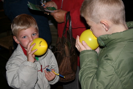 Een geliefde bezigheid op de beurs in 2008, het opblazen van promoballonnen. Ook in 2011 is er ongetwijfeld een diversiteit aan promotiemateriaal!