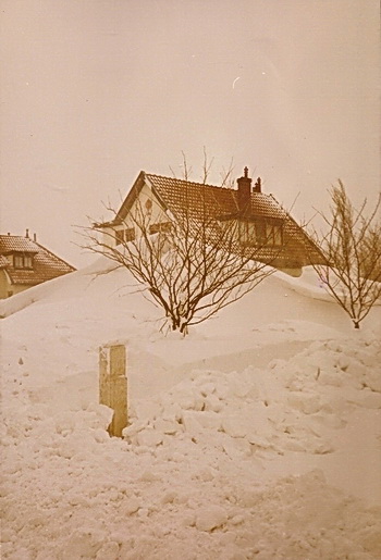 En hier een enorme sneeuwduin, voor het huis van de familie Grüschke, toén? (Het huis dat op de nominatie staat te verdwijnen in verband met de N355-verlegging)