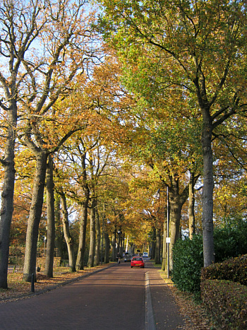 Dit veelkleurig herfstplaatje is van vrijdagmiddag, tussen 3 uur en half vier. Het kleurige en keurige bladerenfestival in de Torenstraat met de fietsende Hein ("Ken je me nog?") en Tom ("Hoe ken je die nou al weer?")