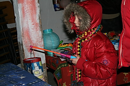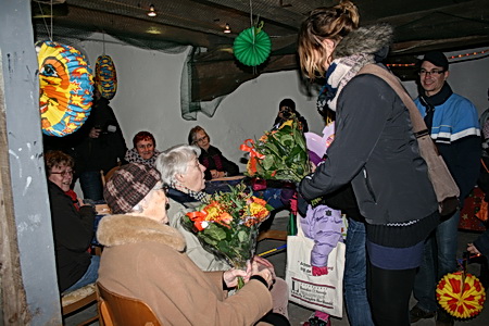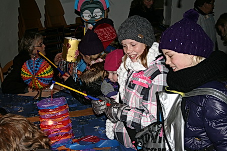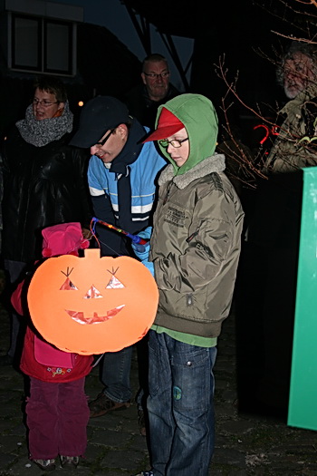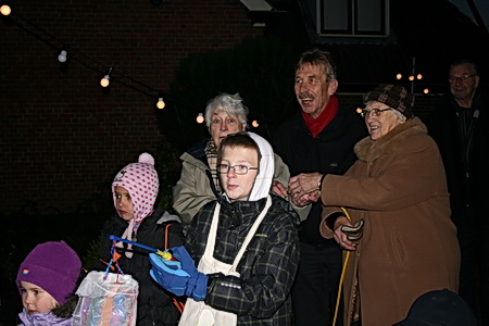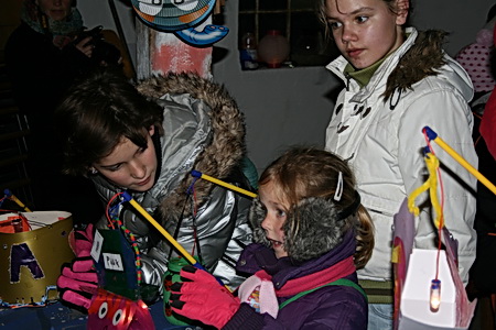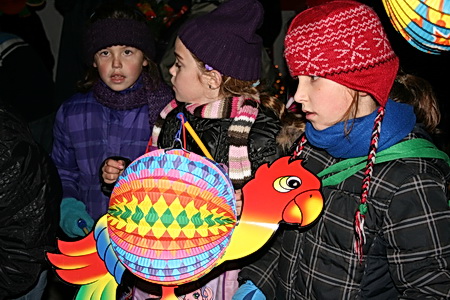 Warm ingepakt wordt de lampion getoond, het lied gezongen. Even later toch maar de capuchon naar beneden, buiten is het kouder....
