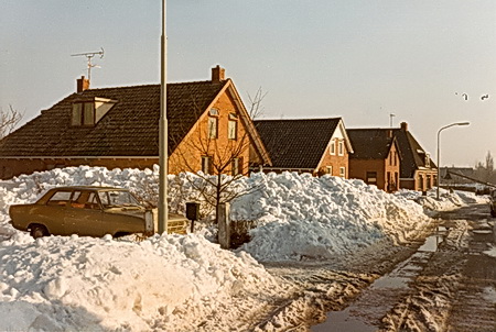 Foto van Jan Thijs de Haan uit februari 1979, aan de Langestraat Zuid. Als ik het goed heb, is dit het huis waarin nu de familie Kooi-Mulder woont. Of is dit al Rijksstraatweg?