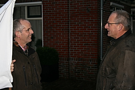 De werkgroepleden komen als eersten naar buiten: Fokje Kooistra en Maria Rozema... Een weekje (ver) weg, nu blij terug!