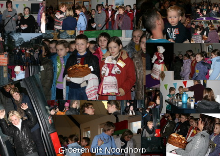 Collage Wit-Russische kinderen (regio Tsjernobyl), dag van aankomst bij "De Wegwijzer" Noordhorn: zaterdag 07 01 2012