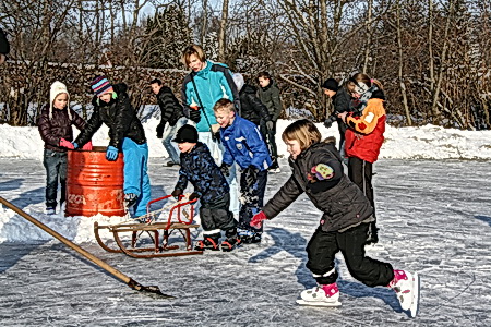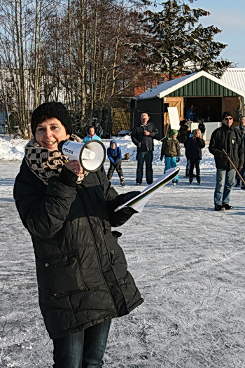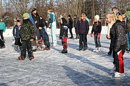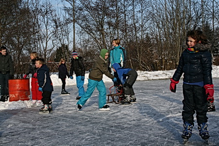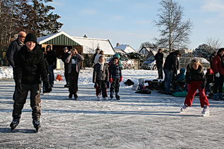 Een overwegend zonnige schaatszaterdag, een hoogtijdag voor de ijsbanen nu de plassen en meren nog worden voorzien van het etiket: “ONBETROUWBAAR IJS!” Op de gezellige ijsbaan bij het sportveld aan de Noorderweg is het zonnig, als ik me daar meld met mijn Canon. Zon aan de hemel, gratis chocolademelk, zonnige gezichten… En een eerste wedstrijd voor kinderen in de basisschoolleeftijd! Nog geen stormloop, maar voldoende belangstelling om er een plezierige wedkamp in een ontspannen sfeer van te maken! Hulde aan de ijsmannen (met name Hille Dijck, Rieuwen Nanninga en Ginus van der Velde), hulde aan de activiteitencommissie, op de baan energiek vertegenwoordigd door megafoniste Grietje Kalf-Bos. Aangemoedigd door de ouders of andere steunpilaren gaan de jeugdige kampioenen in de dop van start. Het mooiste? Elk blijft in zijn eigen waarde! Kampioen of krabbelaar, elke deelnemer wordt gewaardeerd, uitlachen is er niet bij. De uitslag? Ik weet het niet, daarvoor kon ik te kort blijven. Kijk maar eens op www.dorpsbelangennoordhorn.nl!