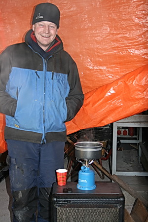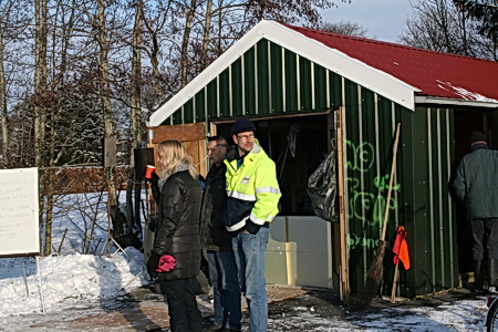De catering vindt plaats vanuit de opbergschuur, het is behelpen na het verdwijnen van de oude Dörpsstee. Maar Anyk en Jolanda weten menigeen van een warm drankje te voorzien, en wat destilleerder Herman Kalf hier aan het brouwen is????? O, ik mag het niet verder vertellen.....