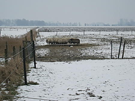 Draaien we 180 graden, kijken we naar het zuiden.... Richting het kanaal met de boerderij van Agema. Besneeuwde verlatenheid, niet lang meer, de lente komt!