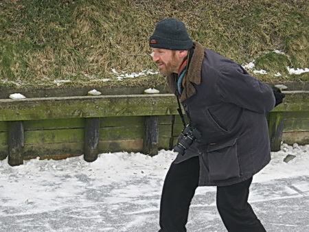 Broer Hemmo kan de verleiding niet weerstaan, hij wil per se even schaatsen.... Bejaard talent, toch stijlvol!